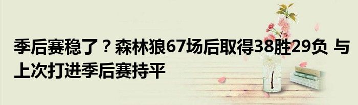 至此,森林狼本賽季已打完67場比賽,他們取得38勝29負。而2017-2018賽季的前67場比賽,森林狼同樣取得38勝29負,該賽季他們最終取得47勝35負,以西部第八的身份打進季后賽,不過首輪以1-4輸給火箭。