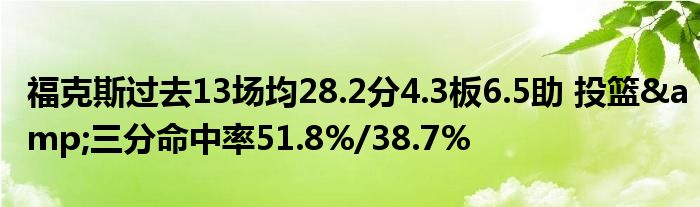 數據顯示,在哈利伯頓被交易后的13場比賽中,福克斯場均得到28.2分4.3籃板6.5助攻,投籃命中率51.8%,三分命中率38.7%。
