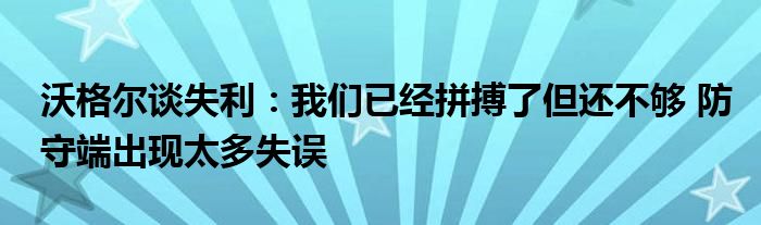 談到本場的失利,沃格爾說:“本場我們已經(jīng)去拼搏了,只是這對(duì)我們來說還不夠。”