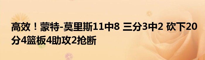 本場比賽,掘金球員蒙特-莫里斯發揮出色,他出場30分鐘,投籃11中8,三分3中2,罰球3中2,得到20分4籃板4助攻2搶斷,出現3次失誤。