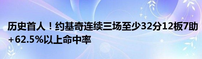 約基奇成為NBA歷史上第一個在連續三場比賽中得到至少32分12籃板7助攻的球員,且命中率都不低于62.5%。
