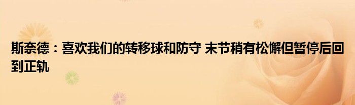 斯奈德表示:“我喜歡隊(duì)員們轉(zhuǎn)移球的方式,我喜歡我們的防守方式。在第四節(jié)有一段時(shí)間,上場(chǎng)的球員稍微放松了點(diǎn)。但是在暫停過后,我們又回到了正軌。 ”