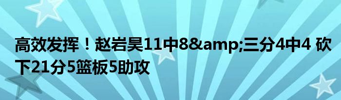 本場(chǎng)比賽,廣廈球員趙巖昊替補(bǔ)出場(chǎng)28分鐘,投籃11中8,三分4中4,罰球1中1,得到21分5籃板5助攻1蓋帽,出現(xiàn)1次失誤。