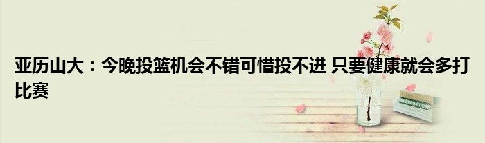 亞歷山大還表示,只要他身體健康,他就會在賽季剩下的時間里盡可能多地打比賽。