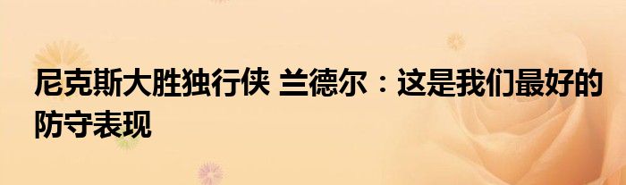 談及本隊發揮,蘭德爾說道:“我敢說,這可能是我們今年最好的防守表現。”