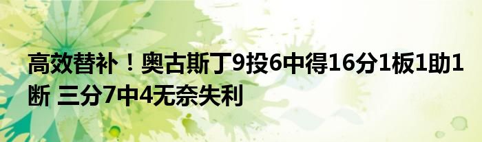 雖然輸球,但奧古斯丁仍有高效發揮,他替補出戰了22分鐘,9投6中得到了16分1板1助1搶斷的數據,全場比賽沒有出現失誤。
