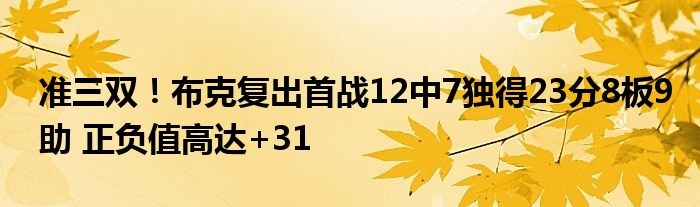 全場比賽,布克出戰33分22秒,投籃12中7,三分7中4,罰球5中5,得到23分8籃板9助攻2搶斷2蓋帽,正負值高達+31。