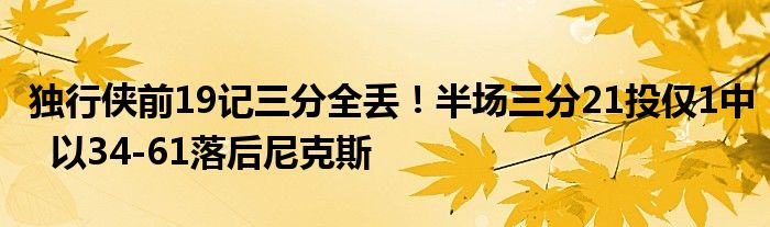 截至半場,獨行俠隊三分球21投僅1中,僅丁威迪在第二節末段命中一記三分,以34-61暫時落后尼克斯。