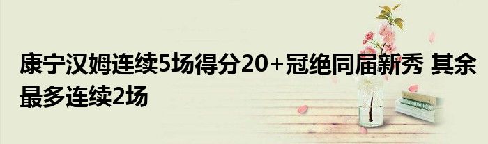 據(jù)統(tǒng)計(jì),本場(chǎng)之后康寧漢姆已連續(xù)第五場(chǎng)比賽得分20+,為本屆新秀之最,其他球員最多不超過(guò)連續(xù)2場(chǎng)。其余4場(chǎng)比賽分別為: