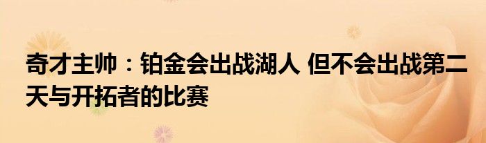 小昂塞爾德表示,球隊(duì)將在接下來的背靠背比賽中先后對(duì)陣湖人和開拓者,計(jì)劃讓波爾津吉斯出戰(zhàn)與湖人的比賽,對(duì)于背靠背第二場與開拓者的比賽,波爾津吉斯將會(huì)休戰(zhàn)。