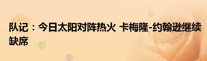 3月10日訊 北京時間早上8點30分,太陽將客場挑戰熱火。