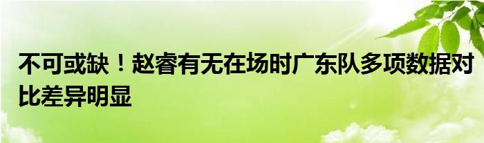 據統計,本賽季趙睿有無在場時廣東隊多項數據對比差異明顯: