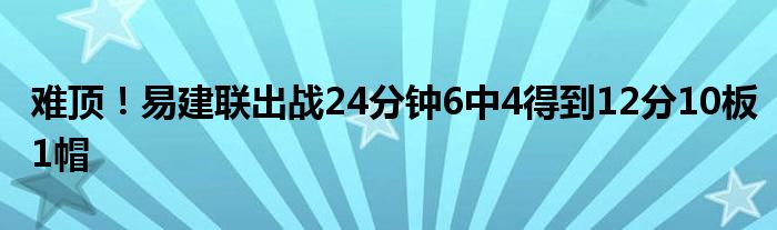 此役,廣東主將易建聯出戰24分鐘,6投4中,三分球3中2,得到12分10板1帽的數據。