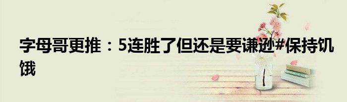 字母哥寫道:“5連勝了,但還是要謙遜。#保持饑餓