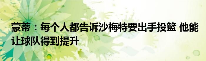 3月9日訊 在今天結束的一場常規賽中,太陽102-99險勝魔術。賽后,太陽主教練蒙蒂-威廉姆斯談到了沙梅特的表現。