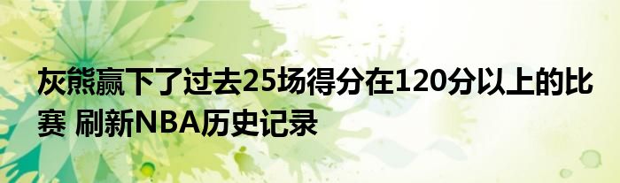 據統計,灰熊贏下了過去25場得分在120分以上的比賽,刷新了NBA的歷史記錄。