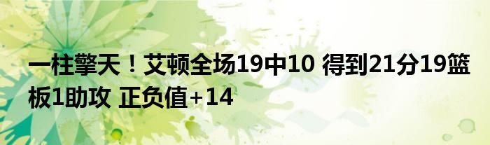 太陽中鋒艾頓今日再次在內線打出統治級表現,全場出戰36分01秒,投籃19中10,罰球1中1,砍下21分19籃板的大兩雙,另還有1助攻入賬,正負值高達+14。