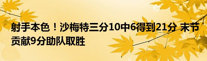 全場比賽,沙梅特出戰(zhàn)39分05秒,投籃12中6,三分10中6,罰球3中3,得到21分3籃板2助攻,正負值+6。