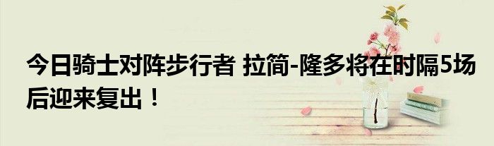 據(jù)賽前騎士記者Chris Fedor報(bào)道,騎士后衛(wèi)拉簡-隆多本場比賽將迎來復(fù)出,此前他因右腳大腳趾扭傷已經(jīng)缺席了球隊(duì)5場比賽。