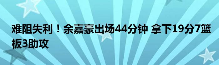 本場比賽,浙江中鋒余嘉豪發揮出色,他出場44分鐘,投籃12中7,罰球9中5,得到19分7籃板3助攻,出現1次失誤。
