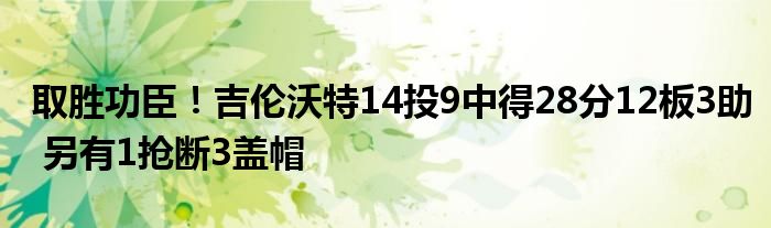 本場比賽,山東外援吉倫沃特有著全面發揮,他替補出戰25分鐘,14投9中得到了28分12板3助1搶斷3蓋帽的數據,28分的得分為全隊最高。