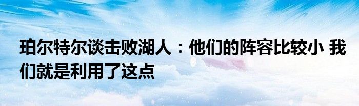 談到今天戰勝湖人的原因,珀爾特爾說道:“湖人的陣容比較小,我們就是充分利用了在體型上的優勢。近期我們在防守端打得很軟,今天也有改觀。”