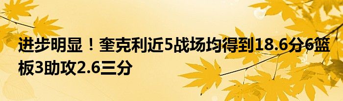 在最近五場比賽中,奎克利場均得到18.6分6籃板3助攻2.6三分,投籃命中率為52.8%,罰球總計25中24。
