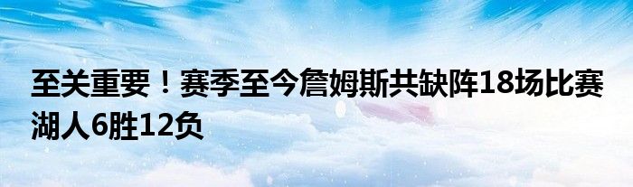 據統計,這是詹姆斯本賽季至今缺陣的第18場比賽。在這18場比賽里,湖人取得了6勝12負的戰績,勝率為33.3%。