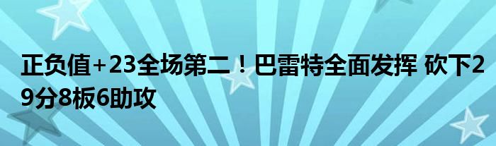 此役,巴雷特發(fā)揮出色,全場(chǎng)出戰(zhàn)36分48秒,得到29分8板6助攻,投籃21投11中,三分6中3,正負(fù)值+23,全場(chǎng)第二。