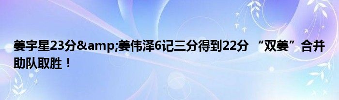 “雙姜”合砍45分助吉林拿下了這場勝利。