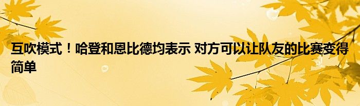 恩比德表示:“哈登讓我們每個人的比賽都變得簡單,這很有趣。”