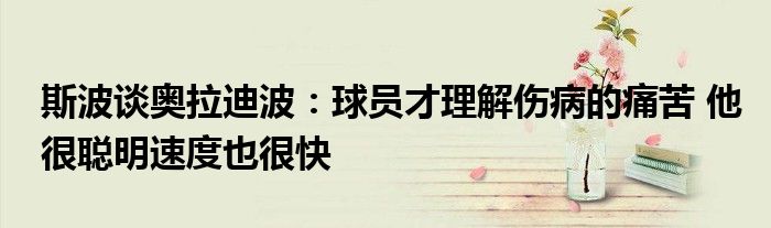 賽后,熱火主帥斯波爾斯特拉接受了媒體采訪。談到傷愈復出的奧拉迪波,斯波說:“只有運動員才能真正理解傷病的痛苦。”