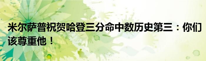 賽后,哈登的隊友米爾薩普加入了登吹的行列,他在個人推特上寫道:“祝賀我的兄弟哈登,他的生涯三分命中數升至歷史第三!!你們這些家伙應該好好尊重他了!!”