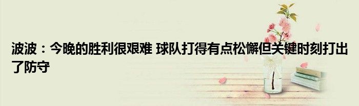 波波表示今晚的勝利很艱難,球隊(duì)對(duì)這場(chǎng)勝利感到很興奮。此外,波波還說(shuō)今晚球隊(duì)的表現(xiàn)有些松懈但在關(guān)鍵時(shí)刻打出了好的防守。