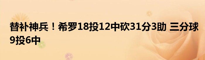 本場比賽,希羅替補出戰打出高效表現,在出場的31分鐘時間里,他18投12中得到了31分2板3助1搶斷的數據。31分的得分為全隊最高。