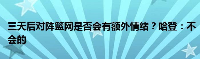 哈登在賽后接受采訪時談到了三天后就將對陣籃網(wǎng)的話題,在被問及對陣前東家是否會有額外的情緒時,哈登打斷了記者的提問,直接說道:“不會的。”