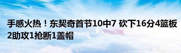 獨行俠球星東契奇第一節手感火熱,他打滿12分鐘,投籃10中7,三分2中1,罰球1中1,單節砍下16分4籃板2助攻1搶斷1蓋帽,出現1次失誤。