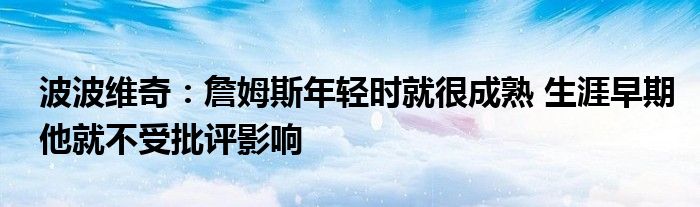 波波維奇表示:“我一開始就很欣賞詹姆斯,在生涯早期他就不會受到批評的影響,這是精神層面的堅韌。他在那么小的年紀就如此成熟,這讓我印象深刻。”
