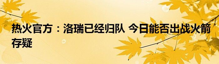 熱火官方消息,洛瑞已經(jīng)歸隊(duì),他今日對陣火箭的比賽狀態(tài)為出戰(zhàn)成疑。