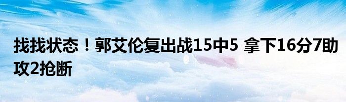 本場比賽,此前已缺戰(zhàn)了14場的遼寧球星郭艾倫復(fù)出,他出場25分鐘,投籃15中5,三分3中1,罰球8中5,得到16分1籃板7助攻2搶斷,只有1次失誤。