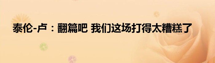 3月7日訊 快船隊今日常規賽93-116大比分不敵尼克斯,賽后,快船隊主帥泰倫-盧談到了本場比賽。