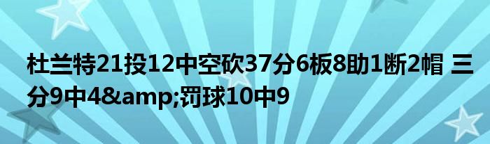 此役杜蘭特出戰39分鐘,全場21投12中,三分9中4,罰球10中9,空砍37分,外加6籃板8助攻1搶斷2蓋帽,出現了7次失誤。