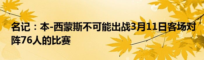 3月7日訊 名記Woj今日在節目中談到了本-西蒙斯的情況,他表示本-西蒙斯不可能出戰3月11日客場對陣76人的比賽。