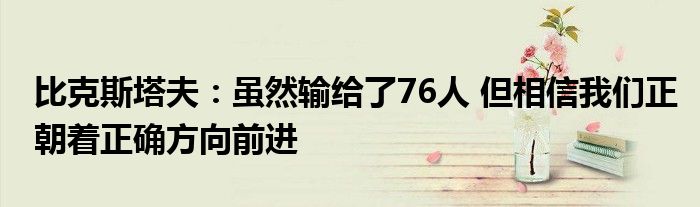 騎士正遭遇三連敗,談到球隊近期的狀態,比克斯塔夫說道:“盡管我們才輸給76人,但我相信全隊正在朝著正確的方向前進。賽季是一場漫長的征途,我們必須在馬拉松和沖刺之間找到平衡,我們也需要全年都保持緊迫感。”