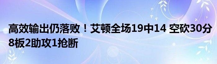 太陽隊中鋒艾頓本場比賽效率極高,出戰32分35秒,投籃19中14,三分1中1,罰球2中1,得到30分8籃板2助攻1搶斷,另有2次失誤2個犯規,正負值-11。