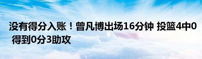 此役,球員曾凡博出場15分51秒,投籃4中0,三分3中0,沒有罰球,得到0分3助攻1失誤,出現4次犯規,正負值-1。