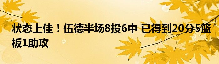 截至半場結束,火箭中鋒伍德出戰17分57秒,8投6中,其中三分5中3、罰球7中5,已得到20分5籃板1助攻。