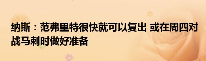 主教練納斯在接受采訪時表示,他認為范弗里特很快就能復出,在今日比賽結(jié)束后,球隊將有兩天的休息時間,范弗里特可能可以在周四的比賽中做好準備。