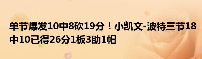 截至第三節(jié)結(jié)束,小波特出戰(zhàn)30分鐘,18中10,其中三分9中4、罰球2中2,已得到26分1籃板3助攻1蓋帽。