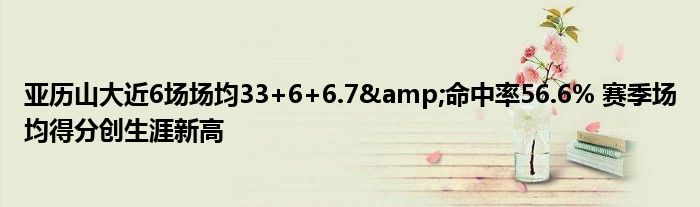 亞歷山大近6場場均能得到33.3分6籃板6.7助攻2搶斷同時投籃命中率能達到56.6%。